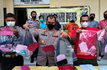 Medan Sunggal – jurnalpolisi.id 3/4/2021Team khusus anti bandit (Tekab) Polsek Sunggal dipimpin oleh Kanit Reskrim AKP Budiman Simanjuntak SE MH dan didampingi Panit Ipda Bambang Wahid pada Minggu (28/03) berhasil ungkap dan tangkap pelaku pembunuh korban seorang wanita Jamilah (46), yang terjadi pada hari Sabtu (27/03) di Jl. Pembangunan Desa Muliorejo Kec Sunggal DS. Keberhasilan pengungkapan kasus tersebut disampaikan oleh Kapolsek Sunggal Kompol Yasir Ahmadi SH SIK MH didampingi Kanit Reskrim AKP Budiman Simanjuntak SE MH pada saat pelaksanaan rilis di mako Polsek Sunggal Polrestabes Medan pada Sabtu (03/04) di mako Polsek Sunggal Polrestabes Medan. Dipaparkannya bahwa usai melakukan olah TKP, diketahui bahwa beberapa harta korban telah diambil oleh pelaku pembunuh korban. Saat itu, diupayakan untuk menghubungi suami korban melalui telepon selulernya namun tidak tersambung sedangkan keberadaannya tidak diketahui. Usai berkoordinasi dengan satuan atas, selanjutnya team yang dipimpin Kanit dan Panit atas perintah Kapolsek Sunggal malam itu juga langsung bergerak menuju Aceh karena diduga kuat, berdasarkan bukti-bukti awal yang cukup, pelaku berinisial MS (42) yang merupakan suami siri korban sudah melarikan diri ke Aceh. Berdasarkan informasi yang valid, akhirnya diketahui MS sedang berada di rumah orang tua angkatnya di Jln Pantai Ujung Blang kec. Banda Sakti kota Lhokseumawe Prov. NAD untuk bersembunyi menghindari kejaran petugas. Namun upaya MS menghindari kejaran petugas gagal karena pada hari Minggu (28/03) sekira pukul 08.00 wib, saat MS sedang tertidur, tempat persembunyiannya digerebek petugas dan langsung mengamankannya. Saat diinterogasi, MS tidak dapat berkelit lagi sehingga MS berikut barang bukti yang berhasil disita petugas berupa 1 (satu) unit SP. Motor Yamaha Vario BK 6864 AGF berikut BPKB dan STNK, 1 (satu) unit HP Merk Reldmi warna Biru, 1 (satu) Unit HP Merk Nokia Orange, KTP korban, uang tunai sebesar Rp 6.000.000,- (enam juta Rupiah) serta 1 ( satu) buah Dompet wanita Warna hijau diboyong ke komando. “Namun niat terduga pelaku untuk melarikan diri guna menghindari jeratan hukum, masih sangat besar yang mana saat dalam perjalanan menuju Mako Polsek Sunggal, MS berupaya melukai dan merebut senjata petugas, sehingga terpaksa kita lakukan tindakan tegas dan terukur dengan menembak kedua kakinya”, tambah Kapolsek. “Untuk motif, berdasarkan keterangan tersangka adalah karena korban dan tersangka bertengkar dikamar tidur hingga korban minta diceraikan oleh tersangka, hingga akhirnya tersangka mencekik leher korban, setelah dipastikan bahwa korban tidak bernyawa lagi, tersangka mengangkat tubuh korban dan memasukkan ke bak air sehingga menimbulkan kesan bahwa korban terpeleset dikamar mandi tersebut”, imbuhnya lagi. “Untuk mendalami perkaranya guna kepentingan proses penyidikan, tersangka kita tahan di RTP Polsek Sunggal dan kita persangkakan melanggar pasal 338 subs 365 ayat (3) KUHP tentang pembunuhan dan atau pencurian dengan kekerasan dengan ancaman hukuman 15 tahun penjara”, tutup Kapolsek mengakhiri. ( RIZKY ZULIANDA / Aspio jpn)