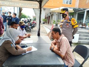 Bagi masyarakat yang didapati melanggar protokol kesehatan terutama yang tidak memakai masker dilakukan pendataan, kemudian terhadap mereka dilakukan sidang ditempat oleh Hakim Pengadilan Negeri Bangkinang, dengan perangkat sidang Hakim Ketua Ratna Dewi Dariani SH dan Panitera Nova Sianturi SH.