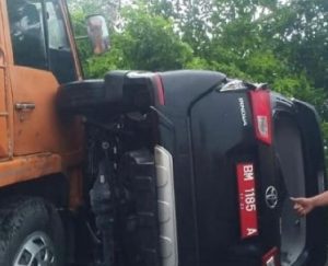 Foto kendaraan dimaksud yang beredar di media sosial, sebuah kendaraan dinas jenis Toyota Kijang Innova berplat merah BM-1185-A yang terjungkal dan sebuah truk Fuso warna oren, setelah diselidiki ternyata kedua kendaraan tersebut mengalami kecelakaan di wilayah kecamatan Pangkalan Koto Baru Kabupaten 50 Kota, Sumbar.