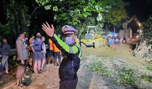Setiba dilokasi longsor, anggota Polsek mendapati kondisi jalan yang tertutup material longsor, serta adanya kabel listrik yang ikut terseret material longsor. Selanjutnya personel Polsek dibantu warga tempatan melakukan pengamanan dan pengaturan dilokasi sembari menunggu petugas terkait untuk penanganannya.