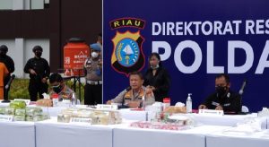 PEKANBARU – Jajaran Polda Riau berhasil mengungkap 3 Jaringan Narkotika Internasional dengan mengamankan 6 orang tersangka serta barang bukti narkotika jenis shabu sebanyak 24,4 KG.