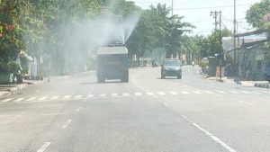 KAMPAR – Untuk mencegah meningkatnya angka penyebaran Covid-19 pasca lebaran Idul Fitri, Tim Gabungan Satgas Penanganan Covid-19 Kabupaten Kampar kembali lakukan penyemprotan Desinfektan di-seputaran Kota Bangkinang pada Senin pagi hingga siang (24/05/2021).