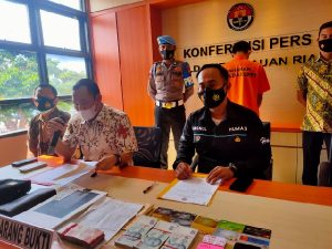″Berawal pada Rabu tanggal 19 Mei 2021, Subdit III Tipidkor Dit Reskrimsus Polda Kepri berdasarkan penyelidikan kami dari Laporan Masyarakat. Kami melakukan OTT terhadap Inisial WD selaku pegawai di Stasiun Karantina Ikan Pengendali Mutu dan Keamanan Hasil Perikanan wilayah kerja pelabuhan Sagulung. Inisial WD ini telah melakukan berulang kali meminta sejumlah uang pada kegiatan Ekspor Udang ke Singapura dari Kota Batam, dari kegiatan OTT tersebut kita dapatkan barang bukti 1 Buah Amplop Berwarna Coklat Bertuliskan “To Pak Wildan” yang berisikan uang tunai sejumlah Rp. 12.450.000,- berikutnya Laporan Exsport Udang Vaname Ahua Bulan April 2021, 1 Unit Handphone Merk Xiaomi dan Tas sandang merk Calvin Klein warna hitam yang berisikan beberapa buku tabungan dan kartu ATM serta Uang Tunai Dolar Singapur sejumlah SGD 16.636″. Jelas Kasubdit III Tipidkor Ditreskrimsus Polda Kepri Kompol Apri Fajar Hermanto, S.Ik.