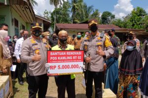 DUMAI – jurnalpolisi.id Kapolda Riau Irjen Agung Setia Imam Effendi SH SIK MSI bersama Gubernur Riau Drs. H Syamsuar, Kepala Kejaksaan Tinggi Riau DR. Jaja Subagja SH MH, Kepala Badan Narkotika Nasional (BNN) Propinsi Riau Brigen Kenedy SH, MM dan Wakapolda Riau Brigjen Tabana Bangun MSI, melakukan peninjauan ke Posko PPKM Mekar Sari Dumai Selatan pada Senin (14/6/2021). Rombongan yang datang berkonvoi menggunakan kendaraan sepeda motor dinas Ditlantas Polda Riau, disambut Forkopimda Kota Dumai di kantor Putri Tujuh Golf Club kota Dumai. Pada kesempatan tersebut, Kapolres Dumai AKBP Ananta Yudistira SIK memaparkan situasi covid-19 terkini di wilayah kota Dumai, yang menurutnya terjadi penurunan secara signifikan masyarakat yang terkonfirmasi covid-19, sebagai dampak dari meningkatnya kesadaran masyarakat melaksanakan vaksin dalam dua minggu terakhir. Setelah menerima penjelasan, Kapolda bersama rombongan melanjutkan kegiatan dengan melakukan peninjauan rumah sakit ICU yang baru saja diresmikan oleh Gubernur Riau H Syamsuar.Diketahui, Rumah Sakit Pertamina kota Dumai memiliki 4 Ruangan isolasi, diantaranya 2 ruangan ICU terdiri dari 5 bed pria dan 5 bed wanita dan 2 ruangan biasa terdiri dari 10 bed pria dan 8 bed wanita, yang dengan kondisi tersebut diharapkan mampu memberikan pelayanan kesehatan yang lebih baik bagi masyarakat. Kapolda bersama rombongan melanjutkan peninjauan ke Posko PPKM di RT 02 dijalan Bangun Jinawi Kelurahan Mekar Sari Kecamatan Dumai Selatan kota Dumai, yang memiliki 12 orang relawan covid-19 dan aktif menjalankan aktifitas. Kapolda Riau mengatakan Posko PPKM menjadi ujung tombak dalam penanganan covid-19 diwilayah Riau. “Posko PPKM ini menjadi andalan kita, sebagai ujung tombak dalam penanganan covid-19 disemua wilayah. Posko PPKM adalah bukti kehadiran negara di tengah-tengah masyarakat,” ujar Irjen Agung disela sela kunjungannya. Sementara itu Gubernur Syamsuar mengatakan, bahwa posko PPKM berskala Mikro berperan untuk pencegahan, penanganan, pembinaan dan pendukung pelaksanaan penanganan COVID-19 di tingkat Desa atau Kelurahan. “Posko PPKM mengedepankan penerapan 3T Dan 5M untuk meminimalisir penularan covid-19,”terangnya. Pada kesempatan peninjauan, Gubernur dan Kapolda memberikan tali asih bagi masyarakat kurang mampu serta bantuan untuk pembangunan/perbaikan Pos Kamling Kelurahan Mekar Sari.( anto d)