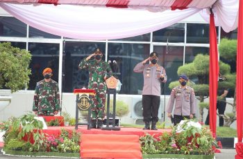Kapolri Jenderal Polisi Listyo Sigit Prabowo bersama Panglima TNI Marsekal Hadi Tjahjanto membuka Latihan Integrasi Taruna Wreda (Latsitarda) ke-41 di Medan, Sumatera Utara, Rabu (7/4/2021).