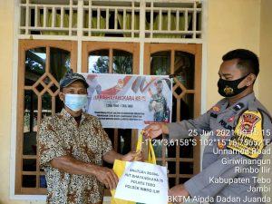 TEBO, jurnalpolisi.id Menjelang Peringatan HUT Bhayangkara ke 75 yang puncaknya jatuh pada tanggal 1 Juli 2021 mendatang, hari ini serempak jajaran Polres Tebo menggelar bakti sosial (baksos), seperti yang dilakukan oleh Polsek Rimbo ilir dalam gelar baksos kali ini diimplimentasikan dengan membagikan masker maupun memberikan paket sembako kepada Sobat Kamtibmas, yang ada di wilkum Polsek Rimbo Ilir. Pembagian masker kepada warga pengguna jalan atau pengendara roda empat maupun roda dua, yang melintas di depan Puskesmas Alai Ilir Kecamatan Rimbo Ilir Kabupaten Tebo. Sedangkan pembagian paket sembako diberikan kepada sobat kamtibmas dari sejumlah kalangan pelopor pemuda, tokoh masyarakat, tokoh agama dan awak media yang selama ini aktif mempublikasikan giat serimonial Polsek sampai ke Bhabinkamtibmas (BKTM) di wilkum Polsek Rimbo Ilir. Kapolsek Rimbo Ilir AKP Ibrahim dikonfirmasi menyebutkan, bahwa dalam menyambut HUT Bhayangkara ke 75 jajaran Polsek Rimbo Ilir dalam gelar bakti sosial membagikan masker gratis kepada warga pengguna jalan, juga memberikan paket sembako kepada Sobat Kamtibmas, para pensiunan Polri dan keluarga Warakawuri Polri, serta awak media sidakpost. “Semoga paket sembako yang diberikan bermanfaat kepada yang menerimanya, khusus kepada awak media sidakpost.id diucapkan terimakasih yang selama ini bersinergi dan berkontribusi dalam mempublikasikan giat Polsek hingga sampai ke Bhabinkamtibmas. ” Ujar Kapolsek AKP Ibrahim. Awak media sidakpost.id Amir Said menuturkan, pihaknya mengucapkan terima kasih kepada Polsek Rimbo Ilir yang telah memberikan bingkisan berupa sembako dalam moment jelang HUT Bhayangkara ke 75. ” Yang penting bukan nilai harga sembako yang diberikam, tetapi nilai momentum secara nasional yang perlu dihargai. Dirgahayu HUT Bhayangkara ke 75, Semoga dapat terwujudnya Transformasi Polri yang Presisi, Bravo Polri. ” Ucap Amir Said. (mides)