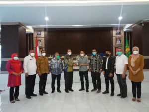 Langkat.Junalpolisi.id Angggota DPRD Pemerintah Provinsi Sumatera Utara melakukan kunjungan ke Pemkab Langkat. Salah satu tujuannya menyelaraskan pembangunan di Langkat. Disambut Bupati Langkat Terbit Rencana PA melalui Wakil Bupati Langkat H. Syah Afandin, bertempat di Ruang Pola Kantor Bupati Langkat, Rabu (9/6/2021). Kunjungan ini juga dalam rangka peninjauan lapangan dari tim kunjungan kerja ke daerah pemilihan sumut XIl ( Langkat dan Binjai). Dipimpin Ketua Tim DPRD Provsu H.Ajie Karim bersama wakil ketua Rudi Rangkuti, sekretaris Hendro Susanto dan sejumlah Anggota DPRD Provsu Dapil Sumut XII, serta didampingi Ketua Koordinator OPD Sumut H.Rajali. Dikunjungan, Ajie mengatakan kehadiran pihaknya untuk mendengar secara langsung aspirasi warga Langkat – Binjai untuk ditampung. Selain itu, Ajie juga memberikan apresiasi kepada Pemkab Langkat atas keberhasilan meraih opini WTP ke dua kalinya dari BPK RI. Ia juga memberikan dukungan kepada Bupati Langkat dalam pemberantasan narkoba. “Semoga kedatangan kami sebagai mitra pemerintah, dapat ikut serta membangun Sumut bermartabat melalui program yang diberikan kepada warga Langkat,” ujarnya. Menambahkan Rajali, bahwa program kerja Pemkab Langkat perlu dukungan dari Pemprovsu, baik dalam pembangunan sarana maupun prasarana. Jadi, kunjungan ini sebagai salah satu langkah untuk menyelaraskan antara program Pemrovsu, DPRD SU maupun Pemkab Langkat sendiri. “Upaya kunjungan kita ini, guna menyelaraskan pembangunan di Langkat, untuk Sumut bermartabat,” terangnya. Sementara Wabup Langkat, berterimakasih atas kunjungan tersebut. Sebab menurutnya, kunjungan ini penting, sekaligus memiliki nilai strategis dalam mencari masukan dan menyerap aspirasi masyarakat Langkat untuk pembangunan. Selain itu, juga adanya aturan yang menetapkan adanya tanggung jawab provinsi di Kabupaten/ Kota, sebagai dukungan pembangunan. “Semoga kunjungan ini dapat menyelaraskan pembangunan menuju Sumut bermartabat serta Langkat yang sejahtera,” harapnya. Turut mendampingi Wabup, Sekdakab Langkat dr.H Indra Salahudin, para Asisten dan Staf Ahli Bupati Langkat, serta sejumlah para kepala perangkat daerah. (sahrul)