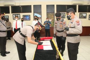 BATAM, jurnalpolisi.id Kapolresta Barelang Kombes Pol Yos Guntur, SIK Pimpin langsung Upacara Pelantikan dan Serah Terima PS. Kasat Binmas Polresta Barelang dan Kapolsek Batu Aji Polresta Barelang bertempat di Aula Aninditha Lt. II Mapolresta Barelang. Jumat (25/06/2021) Kegiatan tersebut di hadiri Kapolresta Barelang sebagai Irup Upacara, yang di ikuti oleh Wakapolresta Barelang AKBP Junoto, SIK, Para Kabag, Kasat, Kapolsek Jajaran, Kasi, Para Perwira dan personil Polsek Batu Aji. Upacara Pelantikan dan Sertijab dipimpin oleh Kapolresta Barelang Kombes Pol Yos Guntur, SIK berdasarkan surat telegram Kapolda Kepri STR/325/VI/KEP/2021 tanggal 10 Juni 2021 ditandai dengan penandatanganan berita acara sertijab, penandatangan pakta integritas dan pengambilan sumpah jabatan serta Penyerahan Cendramata kepada AKBP Jun Chaidir. Pejabat yang melaksanakan Pelantikan Yakni PS. Kasat Binmas Polresta Barelang AKP Mangiring, SH dan yang di serah terimakan yakni Jabatan Kapolsek Batu Aji yang sebelumnya dijabat AKBP Jun Chaidir diserah terimakan  kepada Kompol Daniel Ganjar Kristanto, S.Sos, S.I.K. Dalam amanatnya, Kapolresta Barelang menyampaikan bahwa serah terima jabatan merupakan suatu yang sifatnya rutin dan biasa dalam organisasi, untuk PS. Kasat Binmas yang baru AKP Mangiring, SH Segera beradaptasi dan melaksanakan kegiatan-kegiatan yang sudah berjalan yaitu seperti PPKM lebih ditingkatkan sesuai dengan instruksi Menteri Dalam Negeri Nomor 14 Tahun 2021 Tentang Perpanjangan Pemberlakuan Pembatasan Kegiatan Masyarakat Berbasis Mikro Dan Mengoptimalkan Posko Penanganan Covid-19 Di Tingkat Desa Dan Kelurahan Untuk Pengendalian Penyebaran Covid-19. Selamat kepada pejabat yang baru Kapolsek Batu Aji Kompol Daniel Ganjar Kristanto, S.Sos, S.I.K. agar menyesuaikan karna masyarakat di wilayah batu aji masyarakat yang Heterogen, lanjutkan hal positif yang sudah dijalankan pejabat lama. Apa yang sudah dicapai hendaknya bisa ditingkatkan. Terima Kasih kepada Pejabat Lama  AKBP Jun Chaidir atas pengabdian dan dedikasinya selama bertugas di Polresta Barelang. Ungkap Kapolresta Barelang Kombes Pol Yos Guntur, SIK melalui Kasi Humas Polresta Barelang Iptu Tigor Sidabariba, SH.(hms/abdul)
