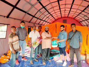 Selain mengunjungi warga Rohingya Amat Leumbeng juga menyalurkan bantuan sembako dan perlengkapan lainnya.