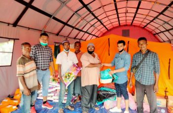 Selain mengunjungi warga Rohingya Amat Leumbeng juga menyalurkan bantuan sembako dan perlengkapan lainnya.