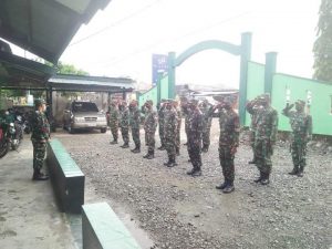 Padang Sappa – jurnalpolisi.id Penegak disiplin prajurit.Danramil 1403-04/ padang sappa,jajaran Kodim 1403/palopo,Kapten Kav.Mursalim Pimpin apel pagi di halaman satuan Makoramil,Kecamatan ponrang,kabupaten luwu.Senin 12-juli-21. “Pelaksanaan apel pagi merupakan sudah menjadi kewajiban bagi setiap anggota prajurit TNI,untuk membentuk loyalitas,disiplinan waktu serta menjaga kekompakan prajurit. “Selain dari itu untuk mendengar arahan pimpinan dihadapan personelnya yang didominasi para Bintara Pembina Desa(Babinsa). Kapten kav.Mursalim memberi arahan dan motivasi,agar pelaksanaan tugas para anggota Babinsa dapat berjalan dengan baik. “Selaku pimpinan,Danramil 1403-04/padang sappa,kapten Kav.Mursalim berpesan kepada para anggota Babinsa tetap semangat menjalankan tugas, hindari pelanggaran,hindari perkelahian dengan masyarakat,hindari perselisihan dengan polisi dan kerja sama yang baik dengan para komponen tokoh masyarakat,serta jangan lupa berdoa kepada tuhan yang maha esa,sesuai dengan kepercayaan agama masing-masing.” “Disamping itu,Di dalam situasi dan cuaca yang sekarang ini,tidak bersahabat maka para Babinsa di wajibkan menyampaikan hal-hal yang menonjol diwilayah masing-masing dan segera laporkan.”Usai melaksanakan apel pagi,para anggota Babinsa bergegas melakukan tugasnya dan melakukan komunikasi sosial(Komsos) diwilayah binaannya masing-masing. (Anto D)