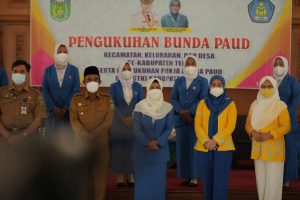 TEBO, jurnalpolisi.id Wakil Bupati (Wabup) Tebo Syahlan.SH menghadiri Pengukuhan Bunda Paud Se Kabupaten Tebo disertai Pengukuhan Pokja Bunda Paud dan IGTKI Tebo, bertempat di Pendopo Rumah Dinas Bupati, pada Senin (12/07/2021). Tampak hadir pada pengukuhan ini Sekretaris Daerah (Sekda) Drs Teguh Arhadi,MM, Asisten Administrasi Umum Drs Erwanto, Perwakilan OPD dan Undangan lainnya. Pengukuhan Bunda Paud dilakukan secara Virtual di Kantor Kecamatan masing-masing yang dipimpin oleh Hj Saniatul Lativa,SE,MM selaku Ketua Bunda Paud Kabupaten Tebo. Hj Saniatul Lativa juga melantik Yusnelis Teguh BA sebagai Ketua Pokja Bunda Paud Kabupaten Tebo, serta sejumlah Kader Pokja lainnya. Sedangkan IGTKI Kabupaten Tebo yang diketuai oleh Farida Hanu, yang dilantik oleh Perwakilan Ketua IGTKI Provinsi Jambi Jamilah,M,Pd. Wabup Tebo Syahlan dalam sambutan mengatakan, dirinya mengapresiasi atas Pengukuhan Bunda Paud dan Pokja Paud ini, diharapkan bisa menstimulasi perhatian terhadap pertumbuhan dan perkembangan anak di Kabupaten Tebo. “Atas nama pemerintah maupun pribadi saya mendukung penuh dilantiknya Bunda Paud dan Pokjanya,diharapankan segera disusun program serta realisasinya. ” Pinta Wabup Syahlan. Bunda Paud Hj Saniatul Lativamenjelaskan tujuan dari dilantiknya sejumlah kader Bunda Paud, Pokja Bunda Paud dan IGTKI Tebo. Adanya pengukuhan tersebut, adalah merupakan amanah negara agar memiliki generasi yang berkualitas. ” Dengan adanya Bunda Paud, Pengurus Pokja Bunda Paud dan IGTKI ini supaya diharapkan pendidikan Paud di Kabupaten Tebo bisa berkualitas, serta dapat melahirkan generasi yang berkualitas dan handal. “Ujar Hj Saniatul Lativa, (mides)