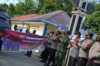 Langkat-.Jurnal polisi.id Polres Langkat kembali melakukan penyemprotan disinfektan disejumlah lokasi dan fasilitas umum, Jumat (16/7/2021). Penyemprotannya menggunakan mobil Water Canon Polres Langkat. Langsung dilepas Kapolres Langkat AKBP Danu Pamungkas Totok didampingi Kadis Kominfo Langkat H.Syahmadi, mewakili Bupati Langkat Terbit Rencana PA, dari depan Mapolres Langkat, Stabat Kadis Kominfo mengatakan, kegiatan ini gawean Polres Langkat. Secara serentak dilakukan seluruh Polres jajaran Poldasu. Hadirnya, Pemkab Langkat dan unsur Forkopimda Langkat lainnya, sebagai wujud dukungan serta sinergitas dalam upaya memutus penyebaran COVID-19. Selain mengunakan mobil water canon, penyemprotan disinfektan juga menggunakan sepeda motor dipimpin Kabag Ops dan Kasat Sabhara Polres Langkat. Tim yang bergabung dalam penyemprotan diantaranya, 7 personil Sabhara Porles Langkat, 5 personil Binmas Polres Langkat, 1 tim Humas Polres Langkat, serta 1 tim Pemadam Kebakaran dan Dinas Kominfo mewakili Pemkab Langkat. Sementara alat dan fasilitas yang diturunkan, sambung Syahmadi, satu unit mobil Binmas Polres Langkat, untuk melakukan himbauan penyemprotan kepada masyarakat. Satu unit mobil Water Canon Polres Langkat untuk melakukan penyemprotan. Satu unit mobil Damkar Pemda Langkat untuk melakukan Penyemprotan. Satu unit mobil Sabhara Polres Langkat untuk mengawal jalannya penyemprotan. Sedangkan lokasi penyemprotannya, sepanjang jalan Proklamasi Stabat Kelurahan Kwala Bingai, Jalan Lintas Sumut, Jalan Perniagaan Kota Stabat, Kelurahan Perdamaian dan Kelurahan Dendang Turut hadir Danramil 07 Stabat Kapten Arh.Iroma Harahap, Sekdis M. Hidayat, para PJU Polres Langkat. (sahrul)