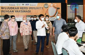 Jakarta – jurnalpolisi.id Pemerintah menargetkan 70% dari jumlah penduduk Indonesia mendapatkan vaksinasi Covid-19. Menteri Komunikasi dan Informatika Johnny G. Plate menyatakan untuk mewujudkan hal itu memerlukan kerja sama lebih masif seluruh komponen pentahelix bangsa, termasuk perguruan tinggi. “(Target vaksinasi) Setara dengan 181,5 juta, satu pekerjaan yang tidak gampang. Jadi, tidak bisa Pemerintah saja, tidak bisa juga hanya aparat atau petugas kesehatan, tetapi seluruhnya baik Pemerintah, dunia usaha, media, organisasi sosial kemasyarakatan dan perguruan tinggi atau dunia akademik kita sendiri harus terlibat di dalamnya,” kata Menkominfo, Johnny G. Plate saat meninjau Vaksinasi Massal Tahap Pertama untuk Masyarakat di Universitas Katolik Indonesia Atma Jaya, Jakarta, Rabu (07/07/2021). Menteri Johnny mengapresiasi inisiatif Unika Atma Jaya untuk mendukung Program Vaksinasi Covid-19. Menurutnya saat ini sudah ada sekitar 13,3 juta vaksin dosis pertama yang diberikan kepada masyarakat. “Karenanya kita membutuhkan lebih masif lagi dalam rangka vaksinasi. Di sinilah peran kolaborasi kita, tidak bisa dilakukan sendiri-sendiri. Di saat di mana PPKM darurat yang menghambat atau membatasi gerakan dan tindakan masyarakat, di saat yang sama pula kita harus sukses meningkatkan vaksinasi itu sendiri,” tuturnya. Menkominfo memaparkan, di bulan Juli ini setidaknya minimal 1 juta penyuntikan vaksin per hari dilakukan. Bahkan, menurutnya, Pemerintah mendorong agar vaksinasi terus meningkat, sehingga pada bulan Agustus 2021, lebih dari 2 juta dosis vaksin tersalurkan kepada masyarakat. Jika semua itu terlaksana dengan baik, maka di bulan November atau Desember akan menghasilkan herd immunity secara nasional. Menurut Menteri Johnny, Pemerintah juga memfokuskan untuk memperhatikan komunikasi regional melalui gerakan atau kegiatan vaksinasi dengan menyasar berbagai wilayah lebih agresif lagi. “Dari data itu, kita harus pahami bersama-sama bahwa kegiatan vaksinasi ini benar-benar harus dilakukan secara masif. Apa yang dilakukan oleh Atma Jaya hari ini adalah respon langsung mereka dalam mengambil bagian di dalam usaha bangsa kita secara bersama-sama untuk mengakhiri pandemi Covid-19,” tuturnya. Mewakili Pemerintah, Menkominfo menyampaikan duka cita mendalam kepada anggota keluarga besar Unika Atmajaya yang meninggal akibat paparan Covid-19. “Saya turut berduka dan mendoakan rekan-rekan, sahabat-sahabat, anggota keluarga para mahasiswa yang telah berpulang. Beberapa hari yang lalu atau bulan ini kita semua dikejutkan. Saya juga menerima kabar ada beberapa rekan saya, teman satu kelas saya, teman yang selalu berkumpul bersama-sama saya yang terpaksa harus pergi meninggalkan,” ungkapnya. Imbau Disiplin Prokes Dengan kenaikan tren kurva pandemi Covid-19, Menteri Johnny mengimbau masyarakat agar selalu tetap disiplin melaksanakan protokol kesehatan 3M, yakni memakai masker, mencuci tangan secara teratur dan menjaga jarak. Menurutnya, hal itu diperlukan untuk memutus mata rantai penyebaran Covid-19. “Saat ini muncul varian baru Delta, sehingga masyarakat diharapkan untuk menggunakan double masker. Saya pagi ini menyaksikan protokol kesehatan itu dilaksanakan dengan baik di tempat ini. Hal itu berguna untuk mencegah penularannya,” jelasnya. Di saat yang bersamaan, Menkominfo menegaskan Pemerintah mengambil berbagai kebijakan serta langkah taktis dan strategis untuk melaksanakan 3T, yaitu tracing, tracking dan treatment terhadap penduduk yang tertular. “Secara khusus, treatment bagi pasien-pasien yang tertular Covid-19. Kita harapkan kerjasama Pemerintah dan masyarakat ini harus dilakukan dengan lebih baik dari waktu ke waktu agar titik simpul kita, keberhasilan untuk memutus rantai ini bisa berhasil,” jelasnya. Namun demikian, Menteri Johnny mengharapkan masyarakat senantiasa bisa menjaga diri dengan mengikuti proses vaksinasi. “Jadi, proses vaksinasi ini penting untuk memungkinkan terciptanya kekebalan atau imunitas tubuh kita. Ini para dokter mengatakan demikian,” ungkapnya. Sebelumnya, pelaksanaan Sentra Vaksinasi Atma Jaya ber-Daya (SVA-DAYA) telah berlangsung dua kali di Kampus 3 Unika Atma Jaya, Serpong, Tangerang Selatan. Hari ini, program vaksinasi membuka peluang bagi masyarakat sekitar Kampus Atma Jaya Jakarta, meliputi wilayah Karet, Kunigan, Setiabudi, Gatot Soebroto. Meski tampak warga yang berasal dari Bekasi, Tangerang, bahkan Jombang, Jawa Timur. Dalam acara itu, Menkominfo didampingi Rektor Unika Atma Jaya, Agustinus Prasetyantoko; Wakil Rektor Bidang Kemahasiswaan dan Alumni Unika Atma Jaya, Prajaka; Ketua Panitia SVA∙Daya 3 Unika Atma Jaya, Michell Suharli serta tenaga pendidik UAJ; Ketua Iluni UAJ, Gahrani Chen; serta pegiat vaksinasi di Jakarta.( Herry/Red)