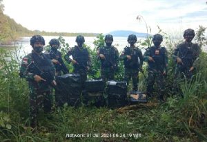 MUARA TAMI – jurnalpolisi.id Personil TNI Satgas Pamtas RI-PNG Yonif 131/Brs Pos Muara Tami berhasil menggagalkan penyelundupan ratusan kaleng Beer ber-alkohol dan makanan snack dari Negara Papua Nugini ke wilayah Indonesia di pantai Logpon sungai Muara Tami Distrik Muara Tami, Jayapura (31/7/2021). Hal tersebut disampaikan Dansatgas RI-PNG Yonif 131/Brs Letkol Inf Muhammad Erfani S.H., M.Tr (Han) dalam rilis tertulisnya di Skouw Distrik Muara Tami Jayapura. Menurut Dansatgas, diamankannya ratusan kaleng Beer ber-alkohol dan makanan snack ilegal asal PNG tersebut bermula saat personil pos melaksanakan siaga fajar yang mendengar suara boat mendekat kearah sungai Muara Tami. Kemudian Danpos menyiapkan 1 regu untuk melaksanakan kegiatan patroli ke arah Muara sungai Tami dan menemukan tumpukan kotak kardus tanpa pemilik. “Setelah diperiksa tumpukan kotak kardus tersebut berisikan 336 kaleng beer berlabel Niugini Ice Premium beer, Pacific Premium beer dan SP Lager Beer dengan kandungan alkohol 4,5% dan 5.2% dengan berat total 110,880 liter.Selain itu didapatkan juga makanan snack yang semuanya merupakan produksi negara PNG”, ujar Dansatgas. Ditempat terpisah Danpos Muara Tami Letda Inf Arjunti Harahap mengatakan kegiatan patroli keamanan maupun sweeping, rutin dilaksanakan oleh personel Satgas di wilayah yang menjadi jalur keluar masuknya orang dan barang-barang secara ilegal. “Hal ini merupakan kegiatan rutin satgas guna mencegah segala macam kegiatan pelintas batas ilegal maupun penyelundupan barang-barang baik yang masuk maupun akan keluar dari wilayah NKRI. Saat ini barang bukti sudah kami amankan dan selanjutnya barang bukti tersebut akan diserahkan kepada pihak berwenang”, ucap Danpos. (Anto D)