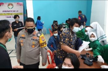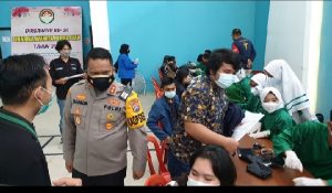 Banyuwangi – JURNALPOLISI.ID Polresta Banyuwangi menggandeng himpunan mahasiswa di Kabupaten Banyuwangi untuk mensukseskan program vaksinasi Goes to Campus di Auditorium GBK STIKES Banyuwangi. Selain AKBP Nasrun Pasaribu (Kapolresta Banyuwangi) teelihat hadir dalam.kegiatan yang bertajuk “Polresta Banyuwangi Goes To Campus” antara lain KOMPOL AGUNG SETYA BUDI (Kabagops Polresta Banyuwangi), KOMPOL EDY PRISWANTO, (Kasat Intelkam Polresta Banyuwangi), IPTU EDY WAHONO, (Wakasat Intelkam Polresta Banyuwangi), LULUT, ST (Paurkes Polresta Banyuwangi), Dr. H. SOEKARDJO (Rektor Stikes Banyuwangi), Noval (Ketua HMI Cab. Banyuwangi) dan Gabungan Mahasiswa se Kab. Banyuwangi ± 200 Orang. Kapolresta Banyuwangi AKBP Nasrun mengungkapkan, vaksinasi goes to campus merupakan salah satu terobosan yang terus dilakukan untuk percepatan vaksinasi. Sebelumnya Polresta Banyuwangi telah membuat inovasi vaksinasi door to door untuk datangi masyarakat. “Kita terus lakukan upaya percepatan vaksinasi di wilayah hukum Polresta Banyuwangi. Kali ini kita mengajak mahasiswa untuk mensukseskan gerakan vaksinasi guna mewujudkan herd immunity,” ujar AKBP Nasrun pada Selasa (27/7/2021). Ratusan mahasiswa dari organisasi himpunan kemahasiswaan seperti PMII, HMI, GMNI, IMM dan BEM Banyuwangi Raya dari berbagai universitas di kabupaten Banyuwangi antusias mengikuti program vaksinasi untuk mahasiswa ini. “Rata-rata yang meninggal dunia akibat Covid-19 mereka adalah orang yang belum melaksanakan vaksin sehingga kegjatan ini diharapkan dapat menekan angka kematian tersebut,” ujar Kapolresta Banyuwangi. Dr. H. Soekardjo, Rektor Stikes Banyuwangi menyampaikan permohonan maaf kepada semuanya bilamana keadaan sarana prasarana terbatas karena acaranya mendadak namun demikian tidak menghambat acara vaksinasi massal Mahasiswa. “Kegiatan ini merupakan suatu kepekaan yang luar biasa karena mempunyai tanggung jawab moral kepada Mahasiswa,” ujar Rektor Stikes tersebut. Dr. Soekardjo menyampaikan bahwa banyak Nakes yang meninggal akibat Covid-19 sehingga dengan kegiatan semacam ini bisa menekan penyebaran Covid-19. Lebih lanjut harapannya mahasiswa punya kepedulian yaitu memberikan edukasi kepada masyarakat tentang pentingnya melaksanakan Prokes dalam setiap aktivitas dan manfaat vaksinasi di masa pandemi ini. Masyarakat hendaknya tetap waspada terhadap varian baru, maka diharapkan masyarakat ikut vaksinasi dan menjaga kesehatan serta jangan stress. Noval, Ketua Himpunan Mahasiswa Indonesia (HMI) Kabupaten Banyuwangi, berterimakasih atas program vaksinasi antara himpunan mahasiswa yang ada di Banyuwangi atas terlaksananya vaksinasi ini. “Terima kasih kepada Kapolresta Banyuwangi yang mengagendakan presisi goes to campus dan terima kasih juga kepada Rektor Stikes Banyuwangi atas fasilitas gedung,” ujar Noval. Lebih lanjut Ketua HMI tersebut menyampaikan bahwa Covid.19 sudah 1,5 tahun melanda di Indonesia sehingga harapannya kegiatan ini menjadi salah satu upaya percepatan vaksinasi di kabupaten Banyuwangi sehingga ekonomi bisa berjalan normal kembali. Dalam kegiatan tersebut mahasiswa yang berasal dari luar Kabupaten banyuwangi diberikan kesempatan untuk vaksinasi karena pemberlakuan PPKM tidak memungkinkan mereka untuk kembali ke daearah asal. Sebagai bentuk apresiasi atas kegiatan vaksinasi goes to campus Formatur Ketua HMI Cabang Banyuwangi memberikan sertifikat apresiasi kepada Kapolresta Banyuwangi dan Rektor Stikes Banyuwangi. (Humas Resta BWI_2707) ( IWAN&TEAM )