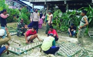 Babinsa Serka Rante Bersama Bhabinkamtibmas bergotong royong membantu masyarakat