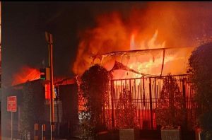 Banyuwangi – JURNAL POLISI.iD Sebuah Caffe Loji milik H. Hapidi yang terletak di Jln.Jendral Ahmad Yani No.01 Penganjuran masuk Kelurahan Tukangkayu, Kecamatan Banyuwangi ludes dilalap si jago merah. Kebakaran yang terjadi sekitar pukul 01.00 wib pada Jum’at malam bermula dari adanya suara ledakan yang ada di area dapur Caffe loji. Menurut keterangan saksi mata, Budi selaku Penjaga Malam di Caffe Loji saat ditemui awak media Jurnal Polisi pada sabtu (14/8/2021) mengatakan, awalnya ia tidak curiga dengan adanya suara ledakan yang ada di area dapur ia mengira hanya suara kucing yang jatuh. ” iya mas awalnya saya gak curiga, saya kira hanya kucing jatuh karena suara ledakanya kan kecil, dan kebetulan ada salahsatu warga yang lewat dan melihat ada percikan kabel tepat dibelakang dapur dan mengasih tau saya. Lalu saya cek benar ternyata api sudah melalap bagian dapur,” jelas Budi. Sementara ditempat lain Kepala Bidang Pemadam Kebakaran ( Kabid Damkar) Sultoni Munir, saat dikonfirmasi membenarkan adanya kebakaran yang menimpa Caffe loji dikawasan simpang lima Banyuwangi. “Pihak Damkar menerima laporan dari warga via ponsel pada pukul 01.20 WIB, dan langsung kami respon, anggota Damkar regu 1 dan anggota Gandiwa regu 1kami terjunkan dan langsung meluncur ke TKP kebakaran dengan 3 unit mobil Damkar untuk melakukan pemadaman, dan Alhamdulillah api dapat dijinakkan pada pukul 02.25 WIB walaupun sedikit ada kendala karena jaringan listrik belum diputus oleh petugas PLN sementara saat itu cuaca hujan,” ungkapnya. Dengan adanya insiden kebakaran ini korban jiwa nihil, sementara kerugian ditaksir oleh pemilik Caffe kurang lebih sekitar Rp.200 juta,” imbuhnya. Reporter : ADI / IWAN