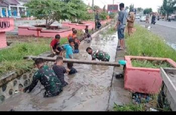 PADANG SAPPA – jurnalpolisi.id Pada hari Senin Tgl 30 Agustus 2021 pkl 08.30 Wita, Danramil 1403-04/Padang Sappa,Kapten Kavaleri Mursalim pimpin apel pagi siagakan para Babinsa agar dapat membantu melaksanakan dan mengevakuasi masyarakat yang terdampak korban banjir di wialayah kecamatan ponrang, kabupaten Luwu. “Danramil 1403-04/padang sappa Kapten Kavaleri Mursalim Bersama Kapolsek Ponrang Iptu Supriadi.SH, beserta Camat Ponrang St.Asriani,S,E, dan seluruh anggota Koramil bersama anggota polsek ponrang, terjun langsung turun membantu masyarakat membersihkan saluran irigasi dan potongan kayu, sampah-Sampah yang menutup pintu-pintu saluran irigasi. “Babinsa Desa Tirowali Praka Arif Patandung beserta satgas BPBD kabupaten Luwu, mengevakuasi salah satu warga di dusun ponrang Desa Tirowali a.n ibu santi umur 21 thn beserta bayinya umur 40 hari ke tenda darurat BPBD kabupaten Luwu. “Adapun Wilayah kecamatan ponrang yang terdampak akibat bajir ada beberapa Desa antara lain. 1.Desa Mario.2.Desa Tirowali3.Desa Buntu Kamiri4.Kelurahan padang sappa dan5.kelurahan padang subur.'” “Pemeritah kabupaten Luwu,Langsung bertindak cepat dan turunkan satgas BPBD kabupeten serta membangun Tenda Darurat dan Dapur Umum untuk membantu warga masyarakat yang terdampak musibah banjir di wilayah kecamatan ponrang. (Anto D)