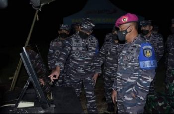 JAWA TIMUR – jurnalpolisi.id Kepala Staf TNI Angkatan Laut (Kasal) Laksamana TNI Yudo Margono, S.E.,M.M. didampingi Komandan Korps Marinir (Dankormar) Mayor Jenderal TNI (Mar) Suhartono meninjau secara langsung Latihan Operasi Dukungan Pasukan Khusus Gabungan (Latopsdukpassusgab) TNI AL Tahun 2021 antara Intai Amfibi (Taifib) Korps Marinir TNI AL dan Komando Pasukan Katak (Kopaska) TNI AL di daerah latihan pertempuran Marinir Banongan Situbondo Jawa Timur. Minggu (22/08/2021). Dikeheningan malam tepat pada hari H jam J, dengan menggunakan 2 Pesawat Udara TNI AL jenis Casa tanpa diketahui musuh para pasukan khusus dari Prajurit Intai Amfibi (Taifib) Marinir dan Komando Pasukan Katak (Kopaska) TNI AL mulai melompat satu persatu dari ketinggian 6000 feet untuk melaksanakan terjun tempur dan Rubber Duck Operation (RDO) menuju titik coordinat Dropping Zone (DZ) di darat dan ditengah laut yang selanjutnya bermanuver dengan senyap menuju sasaran. Latihan gabungan Pasukan Khusus TNI AL kali ini dengan mengusung tema “Prajurit Intai Amfibi (Taifib) Korps Marinir dan Kopaska Koarmada TNI AL, melaksanakan Latihan Operasi Dukungan Pasukan Khusus Gabungan TNI AL TA 2021 di Surabaya, Situbondo dan sekitarnya dalam rangka mendukung tugas pokok Kogab TNI.” Dalam latihan ini seluruh Pasukan Khusus TNI AL melaksanakan materi latihan mulai dari terjun tempur yang dilakasanakan malam hari dengan tujuan mengutamakan faktor kerahasiaan, Rubber Duck Operation (RDO) latihan yang diawali dengan menerjunkan perahu karet dari pesawat selanjutnya para penerjun dengan teknik free fall menyusul mendarat dilaut dengan material perahu karet langsung menuju pantai yang dikuasai musuh mengutamakan faktor kecepatan. Stabo (Suspention Tactical Airbourne Operations) yaitu suatu tehnik pemindahan pasukan lewat udara dengan menggunakan tali yang digantungkan pada helikopter dengan tujuan untuk melaksanakan eksfiltrasi dari suatu tempat dengan cepat. Dari beberapa tehnik tersebut harus dilakukan oleh pasukan khusus yang sudah sangat terlatih karena dalam pelaksanaan suatu operasi sangat dibutuhkan kerahasiaa (Anto D)