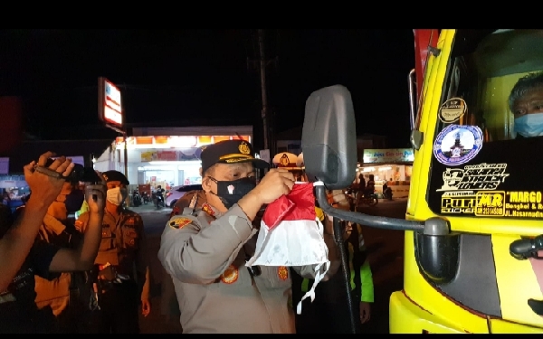 Gelorakan Semangat Merah Putih Polresta Banyuwangi Bagikan 1.000 Bendera Merah Putih dan Paket Sembako Kepada Pengguna Jalan