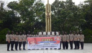 KAMPAR – jurnalpolisi.id Dalam Rangka memperingati Hari Jadi Polwan (Polisi Wanita) ke-73, segenap Polwan Polres Kampar melakukan Ziarah ke Taman Makam Pahlawan Kusuma Eka Bakti Bangkinang. Kegiatan ini digelar pada Kamis pagi (26/08/2021), yang dipimpin Polwan senior Polres Kampar IPDA Fitri Yeni S.Psi dan diikuti seluruh anggota Polwan Polres Kampar. Dalam ziarah makam ini, Para Polwan Polres Kampar melakukan tabur bunga di makam-makam Pahlawan yang ada di Taman Makam Pahlawan Kusuma Eka Bakti Bangkinang. Usai melaksanakan ziarah makam, para Polwan Polres Kampar melanjutkan kegiatan bagi-bagi masker untuk masyarakat di kawasan Plaza Bangkinang, sekitar 500 masker yang disiapkan habis dibagikan untuk warga masyarakat. Pada kesempatan ini mereka juga mengingatkan masyarakat untuk selalu mematuhi protokol kesehatan, yang salahsatunya adalah disiplin memakai masker terutama saat keluar rumah. IPDA Fitri Yeni yang memimpin kegiatan ini, saat dikonfirmasi menyampaikan bahwa pembagian masker ini merupakan wujud kepedulian Polwan untuk ikut berperan dalam mencegah penyebaran Covid-19. Terkait peringatan Hari Jadi Polwan ke-73, disampaikan Fitri yang kesehariannya bertugas sebagai Kanit PPA Satreskrim Polres Kampar ini, bahwa Polwan Polres Kampar telah menggelar beberapa kegiatan, antara lain Bansos dengan memberikan bantuan sembako bagi masyarakat kurang mampu yang dilaksanakan beberapa waktu lalu. Hari ini kami kembali membagikan masker untuk masyarakat, semoga kegiatan ini bermanfaat dan berkontribusi dalam menekan penyebaran Covid-19 dan agar Pandemi ini cepat berakhir, ungkapnya. (Anto D)