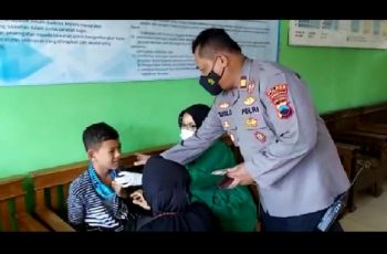 Purbalingga – jurnalpolisi.id Sejumlah pelajar SMP Negeri 1 Pengadegan, Kabupaten Purbalingga mendapat vaksinasi Covid-19 di sekolah, Rabu (15/9/2021). Namun demikian, ada sejumlah siswa yang menolak untuk disuntik vaksin karena mengaku takut. Kapolsek Pengadegan AKP Susilo yang memantau pelaksanaan vaksinasi di sekolah tersebut, punya cara tersendiri untuk membujuk pelajar yang takut agar mau mengikuti vaksinasi. Dengan memberikan iming-iming uang saku, pelajar yang takut dan tidak mau ikut vaksinasi akhirnya bersedia disuntik vaksin. Walaupun dengan raut muka yang masih takut, pelajar tersebut didampingi guru memberanikan diri untuk disuntik vaksin. Petugas vaksinator akhirnya berhasil melakukan vaksinasi kepada pelajar tersebut. Setelahnya, Kapolsek Pengadegan memberikan uang saku sebesar Rp. 100 ribu. Saat dikonfirmasi, Kapolsek Pengadegan AKP Susilo mengatakan bahwa saat dirinya mengecek kegiatan vaksinasi pelajar didapati seorang yang tidak mau disuntik vaksin. Saat kami datang sudah sekitar satu jam, guru maupun petugas vaksinator sudah berusaha membujuk pelajar tersebut namun tetap tidak mau. “Karena hal itu, maka dengan inisiatif saya menawarkan iming-iming uang saku agar mau divaksin. Alhamdulillah pelajar tersebut mau dan akhirnya berhasil divaksin,” kata kapolsek. Kapolsek menambahkan bahwa program vaksinasi bagi pelajar ini harus maksimal pelaksanaannya. Oleh sebab itu, upaya-upaya tertentu perlu dilakukan untuk mengajak para pelajar agar mau dan tidak takut divaksin seperti yang ada di sekolah ini. “Harapannya seluruh pelajar bisa mendapatkan vaksinasi sebagai upaya menciptakan herd immunity. Karena kedepan akan mulai dilaksanakan pembelajaran tatap muka di sekolah,” pungkasnya. ( Arif Akhmad JPN)