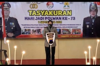 Purbalingga – jurnalpolisi.id Melalui momentum peringatan Hari Jadi Polwan ke-73 tahun 2021, Polwan Polres Purbalingga siap mendukung percepatan penanganan Covid-19. Hal itu disampaikan Wakapolres PurbaIingga Kompol Sopanah saat memberikan sambutan tasyakuran Hari Jadi Polwan di Mapolres Purbalingga, Rabu (1/9/2021) sore. “Saat ini masih berlangsung pandemi Covid-19. Oleh karena itu, kiprah Polwan diperlukan untuk mendukung upaya percepatan penanganan Covid-19,” ucapnya. Disampaikan bahwa, sejumlah kegiatan telah dilakukan Polwan Polres Purbalingga di tengah pandemi Covid-19. Diantaranya melakukan kegiatan sosial berupa donor darah, anjangsana dan penyerahan bantuan sosial bagi warga terdampak Covid-19 di berbagai lokasi. “Harapannya kegiatan Polwan Polres Purbalingga bisa memberikan manfaat bagi masyarakat. Terutama masyarakat yang saat ini merasakan dampak pandemi Covid-19,” ucapnya. Lebih lanjut disampaikan bahwa saat ini Polwan Polres Purbalingga dalam penugasan secara umum tidak berbeda dengan polisi laki-laki. Dimana Polwan juga mengemban tugas di bidang pembinaan maupun operasional yang terbagi di seluruh fungsi. “Kami berharap di usia ke 73 ini, Polwan semakin profesional dan semakin dicintai masyarakat. Serta siap mendukung percepatan penanganan Covid-19,” pungkasnya Syukuran Hari Jadi Polwan digelar secara sederhana dengan tetap memperhatikan protokol kesehatan. Kegiatan dihadiri oleh Ketua Bhayangkari Cabang PurbaIingga Ny. Ika Era Johny selaku ibu asuh Polwan Polres Purbalingga. ( Arif Akhmad JPN)