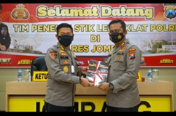 JOMBANG – jurnalpolisi.id Kepolisian Resor (Polres) Jombang menerima kunjungan tim peneliti STIK Lemdiklat Polri terkait efektifitas elektronic traffic law enforcement (ETLE) dalam mencegah pungli pada penegakan hukum di lingkungan fungsi lalu lintas. Tim supervisi dan peneliti STIK Lemdikat Polri dipimpin Kombespol Solihin dengan anggota tim terdiri dari Kombespol Prasetyo Rachmat Purboyo; AKBP H. Samsuri; Pembina TK II Dr. Vita Mayastisari dan Pentu Dr. Benyamin Lufpi. Kunjungan itu disambut Kapolres Jombang AKBP Agung Setyo Nugroho beserta Kabag, Kasat dan Kasi Polres Jombang di ruang Jombang Comand Center (JCC), Senin (13/9/2021). “Selamat datang kepada Kombespol Solihin beserta anggota tim di Polres Jombang,” kata Kapolres Jombang, AKBP Agung Setyo Nugroho. Kapolres mengungkapkan, kegiatan tim peneliti STIK Lemdiklat Polri itu untuk melakukan pengumpulan data dengan cara penelitian terhadap efektifitas elektronic traffic law enforcement (ETLE) dalam mencegah pungli pada penegakan hukum di lingkungan fungsi lalu lintas di Kabupaten Jombang. “Penerapan ETLE merupakan suatu terobosan yang dilakukan oleh kepolisian sebagai tindak lanjut program Kapolri yakni, Polri yang presisi (Prediktif, Responsibilitas, dan Transparansi berkeadilan,” katanya. Selain itu, kata Kapolres, bertujuan meminimalisir interaksi antara pelanggar lalu lintas dengan Polri pada saat melakukan penindakan pelanggaran lalu lintas.
