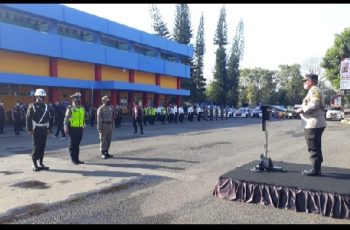Banyumas – jurnalpolisi.id Bertempat di halaman Gor Satria Purwokerto, Polresta Banyumas Polda Jawa Tengah melaksanakan kegiatan Apel Gelar Pasukan Operasi Patuh Candi 2021, Senin (20/9). Hadir dalam kegiatan tersebut antara lain Kapolresta Banyumas Kombes Pol M. Firman L. Hakim, S.H., S.I.K., M.Si., PJU Polresta Banyumas, Ka Denpom IV Purwokerto dan tamu undangan lainnya dengan peserta apel pleton Denpom IV/Purwokerto, Sat Lantas, Sat Samapta, Staf, Sat Intelkam dan Satpol PP Kabupaten Banyumas. Kapolresta Banyumas Kombes Pol M. Firman L. Hakim, S.H., S.I.K., M.Si., selaku pimpinan apel menyampaikan bahwa Operasi Patuh Candi 2021 ini dimulai pada tanggal 20 September sampai dengan 3 Oktober 2021 dalam rangka Kamtibcarlantas di masa pandemi Covid-19. Orientasi diarahkan pada pola preemtif dan tindakan humanis kepada masyarakat dalam rangka membangun kepercayaan kepada masyarakat serta menurunkan angka penyebaran dalam kegiatan PPKM level. “Kegiatan dilaksanakan 100 persen dengan tindakan simpatik dalam rangka membangun kepercayaan masyarakat. Namun demikian tujuan yang ingin dicapai tidak bisa ditangani oleh Kepolisian sendiri, namun harus dibantu oleh instansi pemangku lainnya”, terangnya. Dalam apel gelar pasukan tersebut Kapolresta Banyumas menekankan kepada personel saat bertugas harus mempedomani protokol kesehatan, laksanakan edukasi protokol kesehatan dan tertib berlalu lintas, laksanakan penyuluhan kepada masyarakat tentang lalu lintas serta protokol kesehatan, hindari komplain atau teguran dari masyarakat serta utamakan keselamatan diri sendiri dan masyarakat dengan tetap menerapkan protokol kesehatan. Di tempat terpisah, Kasat Lantas Kompol Ari Prayitno, S.I.K., M.I.K., mengatakan Operasi Patuh Candi dengan tema Melalui Operasi Patuh Candi 2021 Kita Tingkatkan Disiplin Prokes Dan Tertib Berlalu Lintas Dalam Rangka Mencegah Penyebaran Covid-19 Serta Mewujudkan Kamseltibcar Lantas Yang Mantap ini adalah dalam rangka meningkatkan kedisplinan masyarakat dalam menerapkan protokol kesehatan serta meningkatkan kedisiplinan masyarakat dalam berlalu lintas. “Target kegiatan ini adalah kedisplinan prrokol kesehatan dan percepatan vaksinasi. Diharapkan dengan operasi ini agar masyarakat dapat mematuhi aturan lalu lintas dan memutus mata rantai penyebaran Covid-19, jadilah pelopor keselamatan berlalu lintas dan pedomani dalam kehidupan sehari hari”, tutup Kasat Lantas. ( Arif Akhmad JPN)