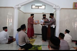 Purbalingga – jurnalpolisi.id Satlantas Polres Purbalingga menggelar kegiatan bertajuk Safari Jumat Kamseltibcarlantas. Kegiatan yang dilakukan yaitu mengikuti salat Jumat sekaligus sosialisasi tertib lalu lintas dan taat protokol kesehatan. Kanit Kamsel Satlantas Polres Purbalingga Ipda Agung yang memimpin kegiatan mengatakan bahwa dalam rangka Operasi Patuh Candi 2021, Satlantas Polres Purbalingga melaksanakan kegiatan Safari Jumat Kamseltibcarlantas. “Kegiatan yang dilaksanakan yaitu mengikuti salat Jumat di Masjid Al Hasan Kelurahan Kalikabong. Setelahnya menyampaikan sosialisasi tertib lalu lintas dan patuh protokol kesehatan,” ucapnya, Jumat (24/9/2021). Kanit Kamsel menjelaskan bahwa sebelum pelaksanaan salat Jumat Jumat dilakukan juga pemantauan penerapan protokol kesehatan di lokasi ibadah. Termasuk membagikan masker kepada jamaah salat yang tidak memakai masker. “Dalam kegiatan dilakukan juga pemberian bantuan sosial bagi marbot masjid dan pemberian sarana protokol kesehatan untuk digunakan di masjid,” jelasnya. Lebih lanjut disampaikan bahwa dengan kegiatan yang sudah dilakukan mampu turut memantau penerapan protokol kesehatan di tempat ibadah. Selain itu, mengajak jamaah salat untuk taat protokol kesehatan dan tertib lalu lintas. Sementara itu, Takmir Masjid Al Hasan Ikhsanudin menyampaikan apresiasi kegiatan yang dilakukan Satlantas Polres Purbalingga. Menurutnya sosialisasi yang disampaikan bisa memberikan pengetahuan bagi para jamaah di Masjid Al Hasan terkait protokol kesehatan maupun permasalahan lalu lintas. “Terima kasih atas kegiatan yang dilakukan semoga apa yang dilakukan bisa bermanfaat dan memberikan pencerahan bagi jamaah,” pungkasnya. (Arif A JPN)