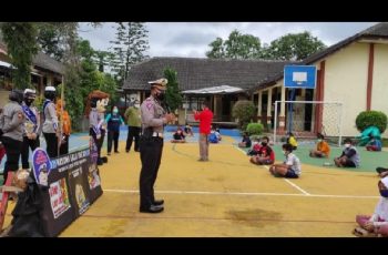 Purbalingga – jurnalpolisi.id Satlantas Polres Purbalingga menggelar pertunjukan wayang lalu lintas di hadapan siswa yang sedang menjalani isolasi terpusat (isoter). Kegiatan dilaksanakan di SMP Negeri 3 dan SMP Negeri 4, Kecamatan Mrebet, Kabupaten PurbaIingga, Selasa (28/9/2021). Wayang lalu lintas ditampilkan oleh dalang Bripka Teguh Riyanto dari Satlantas Polres Purbalingga di lapangan terbuka pada masing-masing sekolah. Kegiatan digelar dengan tetap mempedomani protokol kesehatan dan pengaturan jarak dengan para siswa yang sedang menjalani isolasi terpusat. Kasat Lantas Polres Purbalingga AKP Rizky Widyo Pratomo mengatakan bahwa hari ini kita menampilkan pertunjukan wayang lalu lintas di lokasi isolasi terpusat siswa SMP Negeri 3 dan SMP Negeri 4 Mrebet. Tujuannya memberikan semangat sekaligus edukasi bagi para siswa yang sedang menjalani isolasi. “Selain memberi edukasi tertib lalu lintas kita juga memberikan semangat bagi para siswa yang sedang menjalani isolasi terpusat agar tidak bosan,” ucapnya. Disampaikan Kasat Lantas selain edukasi melalui wayang lalu lintas di lokasi juga dibagikan ekstra fooding bagi siswa. Harapannya siswa yang sedang menjalani isolasi terpusat bisa tetap semangat menjalani isolasi sampai dengan selesai. “Kami berharap para siswa tetap semangat menjalani isolasi dan segera diberikan kesehatan sehingga bisa kembali ke rumah masing-masing,” pungkasnya. Kepala SMP Negeri 3 Mrebet, Sapti Winarni menyampaikan bahwa hari ini kami mendapat kunjungan dari Satlantas Polres Purbalingga. Ditampilkan juga wayang lalu lintas sebagai edukasi kepada para anak didik yang sedang menjalani isolasi terpusat. “Dengan kegiatan ini terlihat anak-anak merasa senang dan semoga bisa dijadikan edukasi tentang tertib lalu lintas dan patuh protokol kesehatan. Selain itu, menjadi motivasi agar cepat diberikan kesembuhan,” ucapnya. Sementara itu, Kepala SMP Negeri 4 Mrebet, Endang Yuliani menyampaikan apresiasi atas kegiatan yang dilakukan Satlantas Polres Purbalingga di lokasi isolasi terpusat. Menurutnya anak-anak menjadi gembira di lokasi isolasi terpusat ini. “Terima kasih atas edukasinya, terima kasih atas motivasi yang diberikan kepada para siswa kami,” ucapnya. ( Arif A JPN)