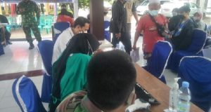 Banyuwangi – jurnalpolisi.id Pelaksanaan vaksinasi di wilayah Kecamatan Srono membidik warganya yang masuk kategori disabilitas atau penyandang cacat. Selasa, (12/10/2021) Kegiatan vaksinasi di wilayah Kecamatan Srono yang diselenggarakan di Balai Desa Sukonatar sebagai langkah mensukseskan program Pemerintah Indonesia sehat, bebas covid-19. Vaksinasi di Balai Desa Sukonatar yang diselenggarakan oleh Kodim 0825/Banyuwangi berserta jajaran yang kebetulan dilansanakan di wilayah Kecamatan Srono. Dalam kegiatan tersebut juga mengutamakan bagi warga Kecamatan Srono yang memiliki kategori disabilitas untuk turut serta mengikuti kegiatan tersebut. Babinsa Sukonatar Serka Edy Nurdiyanto mengatakan “bahwa vaksin diberikan untuk semua warga Negara Indonesia yang sudah layak mendapatkan, misalnya : umur sudah cukup, kesehatan mendukung dan seterusnya” Edy juga menambahkan bagi saudara-saudara kita yang menyadang disabilitas juga mempunyai hak yang sama yaitu mendapatkan vaksin secara berkala “Kita harus belajar dari mereka yang tetap semangat mengikuti program-program Pemeritah saat ini” pungkasnya. ( PUTRI )