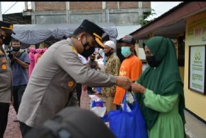 Aceh Timur – jurnalpolisi.id Kapolres Aceh Timur AKBP Mahmun Hari Sandy Sinurat, S.I.K., beserta Ketua Bhayangkari Cabang Aceh Timur Ny. Endang Sandy dan rombongan Pejabat Utama Polres Aceh Timur melaksanakan kunjungan kerja ke Polsek Julok sekaligus menyerahkan bantuan sosial Jum’at, (01/10/2021). Kunjungan tersebut dilaksanakan dengan tujuan untuk mengetahui keadaan dan situasi di wilayah Polsek Julok, acara di buka oleh Kapolsek Julok AKP Masri Aswara dengan melaporkan situasi dan kondisi wilayah Polsek Julok dan dilanjutkan dengan sambutan Camat Julok Adnan, S. Ag kemudian arahan dari Kapolres Aceh Timur. Sementara itu di Ruang Bhayangkari Ranting Julok, Ibu Ketua Bhayangkari Cabang Aceh Timur langsung bertemu dengan Ketua Bhayangkari Ranting Julok beserta anggota untuk melihat dan meninjau langsung bagaimana keadaan kantor Bhayangkari serta melakukan pemeriksaan administrasi. Kapolres Aceh Timur AKBP Mahmun Hari Sandy Sinurat, S.I.K. menyampaikan, maksud kedatangan saya selaku Kapolres ingin bertemu langsung dengan para tokoh juga perangkat gampong di Kecamatan Julok untuk mengetahui hambatan dan kendala dalam pelaksanaan vaksinasi,” ujar Kapolres.