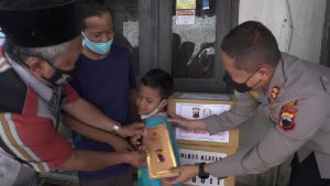 Kapolres Klaten AKBP Eko Prasetyo SH. SIK. MH memberikan bantuan kepada Rangga Dimas Iskandar (6), seorang bocah yang kehilangan penglihatan secara tiba-tiba, Kamis (14/10/2021).