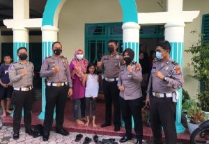 PEKANBARU – jurnalpilisi.id Naera, bocah perempuan berusia 8 tahun yang diduga korban tabrak lari oleh seorang pengendara Ojol tampak tersenyum saat di kunjungi oleh Satlantas Polresta Pekanbaru di rumahnya di Jalan Serayu, Kecamatan Payung Sekaki, Kota Pekanbaru, Riau, Rabu (27/10/2021). Kedatangan personil Satlantas Polresta Pekanbaru ke rumah Naera dipimpin langsung oleh Kasat Lantas AKP Angga Wahyu P, didampingi Kanit Laka Iptu Irsan Efendi dan Kanit Turjawali Iptu Darmainil serta Kasubnit Dikyasa Iptu Ratna Wilis. Dalam kunjungan ke rumah korban tabrak lari tersebut, Kasat Lantas menyampaikan turut prihatin atas kejadian kecelakaan itu, sambil menyampaikan apabila keluarga korban ingin pengurusan asuransi Jasa Raharja pihaknya siap membantu. “Kami siap menerima laporan dan membantu proses pengurusan Jasa Raharja. (korban belum membuat laporan),” kata Angga. Angga juga menambahkan, pihaknya melalui Unit Laka Satlantas Polresta Pekanbaru akan menyelidiki kasus dugaan tabrak lari ini untuk mencari pelakunya. Di kunjungan tersebut Satlantas Polresta Pekanbaru juga menyerahkan bingkisan kepada korban, yang saat itu didampingi oleh Nana, orang tuanya. “Terima kasih kepada Satlantas Polresta Pekanbaru atas kunjungan dan perhatiannya terhadap anak kami,” ujarnya dengan mata berkaca-kaca. Naera yang saat itu menerima bingkisan dari Satlantas Polresta Pekanbaru tampak tersenyum sambil memeriksa isi bingkisan. “Mudah-mudahan Naera cepat sembuh ya dan sekolahnya lebih semangat,” ucap Kasat Lantas saat menyerahkan bingkisan. (Anto D)