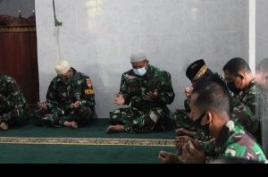 PURBALINGGA–jurnalpolisi.id Kodim 0702/Purbalingga menggelar kegiatan doa bersama dalam rangka memperingati HUT TNI ke-76 yang dikuti oleh perwakilan anggota dari Koramil jajaran Kodim 0702/Purbalingga karena situasi masih pandemi Covid-19. Kegiatan bertempat di Masjid Baitul Qodim Kelurahan Bancar, Kecamatan Purbalingga, Kabupaten Purbalingga, Senin (4/10/2021). Kegiatan yang dipimpin langsung oleh Kasdim 0702/Purbalingga Mayor Ahmad tersebut berlangsung hikmat dengan harapan agar ke depan TNI selalu diberkahi oleh Allah SWT dalam menjaga keutuhan Negara Kesatuan Republik Indonesia diusianya yang ke-76 tahun. Saat ditemui tim Pendim, Kasdim 0702/Purbalingga mengatakan doa bersama yang kita gelar ini merupakan rangkaian kegiatan dalam rangka memperingati HUT TNI ke-76, selain melakukan vaksinasi Covid-19 dan Bhaksos pembagian sembako kepada warga yang kurang mampu. “Doa bersama ini, agar menjadi momentum bagi kita semua untuk introspeksi diri agar ke depan dalam melaksanakan tugas dan tanggungjawab bisa lebih baik lagi,” katanya. Dengan bertambahnya usia TNI yang ke-76 ini, kami berharap semoga TNI semakin jaya dan sukses dalam menjalankan fungsi dan tugasnya menjaga kedaulatan NKRI. Mayor Inf Ahmad menambahkan, kegiatan doa bersama ini sebagai ungkapan rasa syukur kita kepada Allah SWT atas segala limpahan rahmat dan hidayah-Nya kepada kita semua karena sampai hari ini kita masih diberikan kekuatan dan kesehatan dalam mengabdikan diri kepada Bangsa dan Negara Indonesia. “Semoga Allah SWT meridoi segala ikhtiar kita, dan semoga negara yang kita cintai ini terhindar dari segala bala dan bencana serta masa pandemi Covid-19 segera berakhir,” harap Kasdim. ( Pewarta : Arif A JPN)