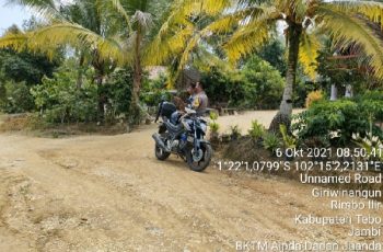 TEBO, jurnalpolisi.id Aipda Dadan Juanda Bhabinkamtibmas yang juga biasa dipanggil Pak Bhabin dari Polsek Rimbo Ilir Polres Tebo, dalam rangka untuk memantau serta monitor keamanan dan ketertiban masyarakat (kamtibmas) melakukan Patroli keliling desa binaannya. Patroli dengan mengendarai Sepeda motor Pak Bhabin masuk jalur keluar jalur kepenghujung Desa Giriwinangun Kecamatan Rimbo Ilir Kabupaten Tebo,Patroli dilakukan dipagi dan siang hari saat desa pun sepi lengang, karena warga beraktifitas pergi ke kebun untuk menyadap karet. Kapolsek Rimbo Ilir AKP Ibrahim, melalui Aipda Dadan Juanda saat dikonfirmasi memyebutkan, bahwa Patroli keliling desa diwaktu pagi dan siang hari dimaksudkan, karena pada umumnya dipagi hari Desa di Kecamatan Rimbo Ilir sepi ditinggalkan masyarakatnya pergi menyadap karet di kebun. “Karena desa sepi diwaktu pagi dan siang hari makanya kita melakukan Patroli untuk memantau kondisi kamtibmas, bisa saja karena desa sunyipelaku kejahatan beraksi melakukan bobol rumah, mencuri depeda motor dan lainnya. ” Kata Pak Bhabin Aipda Dadan, Kamis (07/10/2021). Setelah warga pulang dari kebun menuju kerumah, sebut Aipda Dadan, dirimya melakukan siaran keliling untuk menyampaikan himbauan tentang mematuhi protokol kesehatan dan melakukan Vaksimasi Covid-19. ” Kepada masyarskat agar berhati-hati saat meninggalkan rumah dipastikan rumah sudah terkunci dan bila perlu di berikan kunci tambahan, matikan kompor gas atau kompor minyak dan matikan sliran listrik yang tidak dipakai.” Tutup Pak Bhabin Dadan. (mides)