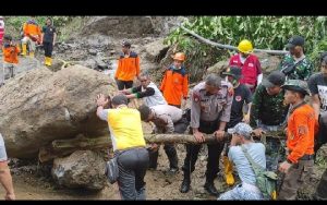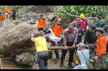 “Evakuasi dilakukan secara manual untuk menyingkirkan longsoran tanah dan batu besar. Sambil menunggu alat berat mengingat untuk menghadirkan alat berat sampai lokasi cukup susah ditempuh,” ucapnya.