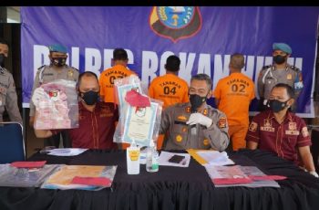 PASIR PANGARAYAN – jurnalpolisi.id Peresmian Jembatan Sei Siasam di Desa Rokan Timur, Kecamatan Rokan IV Kota, Kabupaten Rokan Hulu (Rohul) oleh Gubernur Riau, Syamsuar dan Wakil Gubernur Riau, Edy Natar Nasution pada Rabu (20/10/2021), tanpa kehadiran sang kepala desa setempat, Soewardi Soeryaningrat alias Wardi. Pasalnya, Kades Rokan Timur Soewardi Soeryaningrat tersebut telah ditangkap Tim Unit III Tindak Pidana Korupsi Satuan Reserse dan Kriminal (Tipidkor Satreskrim) Polres Rohul satu hari sebelumnya, Selasa (19/10/2021), dalam Operasi Tangkap Tangan (OTT) melakukan pungutan pembuatan SKRT dan SKGR di kantor desa. “Operasi Tangkap Tangan terhadap Kades Soewardi dan Kaur Tata Usaha Sukron ini merupakan tindak lanjut dari keluhan dan pengaduan warga ke Polres Rohul tentang proses pembuatan SKRT dan SKGR, yang setiap persilnya dipungut biaya Rp 2 juta oleh pelaku,” terang Kapolres Rohul AKBP Wimpi. Wimpi mengaku usai menerima laporan pengaduan warga tersebut, pihaknya langsung memerintahkan Unit III Tipikor Satreskrim Polres Rohul melakukan penyelidikan ke lapangan. “Jadi pada Selasa (19/10/2021), sekitar pukul 15.45 WIB, Unit III Tipikor Polres Rokan Hulu memperoleh informasi kembali tentang adanya masyarakat yang akan membuat Surat Keterangan Riwayat Tanah (SKRT) dan Surat Keterangan Ganti Kerugian (SKGR). Tim kemudian menyelidiki ke kantor Desa Rokan Timur dan terbukti. Kita temukan aksi pungutan untuk 10 persil yang dikenakan biaya masing-masing Rp 2 juta. Total Rp 20 juta,” lanjut mantan Kapolres Kepulauan Meranti tersebut. Di TKP dalam ruangan Kades, kata Eko Wimpiyanto, juga ditemukan dan diamankan 10 persil SKRT dan SKGR sedang dikoreksi dan ditandatangani oleh Kades Soewardi. “Kades dan Kaur TU serta barang bukti langsung kita bawa ke Mapolres Rohul untuk dilakukan pemeriksaan lebih lanjut, para pelaku ini dijerat pasal 12 huruf e undang undang no.31 tahun 1999 sebagai mana diubah dengan undang undang nomor 20 tahun 2001 tentang pemberantasan tindak pidana korupsi jo pasal 55 KUH-Pidana ancaman hukuman paling singkat 4 tahun paling lama 20 tahun dan pidana denda paling sedikit 200.000.000 paling banyak 1.000.000.000,-,” pungkasnya. Sulmandri sp