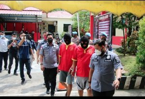 BATAM, jurnalpolisi.id Satresnarkoba menggelar Konferensi Pers Pengungkapan Kasus Peredaran Narkotika Jenis Sabu seberat 2,008 KG yang dipimpin oleh Kasat Resnarkoba Polresta Barelang Kompol Lulik Febyantara, SIK, MH bertempat di Pendopo Satresnarkoba Polresta Barelang. Rabu (13/10/2021) sekira Pukul 10.00 Wib. Pengungkapan dilaksanakan pada hari Jumat tanggal (08/10/2021) Pukul 16.23 WIB di Tanjung Buntung Kec. Bengkong – Kota Batam, dengan 2 Tersangka berinisial HN (48 Tahun) dan WB, (47 Tahun). Berawal dari saat Satresnarkoba Polresta Barelang mendapat informasi dari masyarakat, bahwa ada kegiatan yang mencurigakn warga sekitar akan adanya transaksi narkotika di Tanjung Buntung Kec. Bengkong – Kota Batam kemudian personil Satresnarkoba Polresta Barelang yang di pimpin oleh Kasat Resnarkoba Polresta Barelang Kompol Lulik Febyantara, SIK, MH menindak lanjutinya dengan melakukan penyelidikan. Kapolresta Barelang KBP Yos Guntur, SH, SIK, MH melalui Kasat Resnarkoba Polresta Barelang mengatakan Berawal Sdr. A (DPO) memesan Shabu Seberat 2 Kg kepada tersangka WB kemudian tersangka WB memesan Shabu tersebut kepada tersangka HN, setelah itu tersangka HN mendatangkan sabu tsb dari Malaysia dari sdr V (DPO) melalui kurir yaitu sdr F (DPO).Terjadi komunikasi lewat hp antara tersangka HN dan sdr. F dan kesepakatan bersama agar Shabu tersebut di letakan dengan cara di campakan ke pinggir pantai si abok yang ada pondok (daerah Tanjung Buntung) kemudian sabu tsb diambil oleh tersangka HN untuk dijual kepada sdr. A melalui perantara tersangka WB. Tersangka HN ingin menjual 2 bungkus diduga narkotika jenis serbuk kristal Shabu dibungkus plastik transparan dibungkus lagi dengan plastik warna hijau Berlogo Guanyinwang kepada sdr. A (DPO) melalui tersangka W seharga Rp. 760.000.000,- namun belum sempat barang tersebut terjual mereka sudah tertangkap oleh Sat Resnarkoba. “Sdr HN akan mendapatkan keuntungan dari penjualan barang haram tsb sebesar Rp. 160.000.000,- sedagkan tersangka WB dijanjikan upah sebesar Rp. 5.000.000,- dari sdr A(DPO) dan upah tersebut belum tersangka WB terima” : ungkap Kasat Resnarkoba Polresta Barelang Kompol Lulik Febyantara, SIK, MH Kasat Resnarkoba Polresta Barelang Kompol Lulik Febyantara, SIK, MH mengatakan Jika barang bukti Narkotika Jenis Shabu tersebut beredar di pasaran di BB 2.008 Gram Bisa Menyelamatkan 6.024 S/D 8.032 Jiwa Manusia. Di Asumsikan 1 Gram Itu Dikonsumsi Oleh 3 S/D 4 Orang. Atas perbuatannya, para tersangka dijerat Pasal 114 Ayat (2) Jo Pasal 112 Ayat (2) Jo Pasal 132 Ayat (1) Uu Ri No.35 Tahun 2009 Tentang Narkotika. Dengan Ancaman Pidana Penjara Paling Singkat 5 Tahun Dan Paling Lama 20 Tahun , Semur Hidup Atau Hukuman Mati. Ungkap Kasat Resnarkoba Polresta Barelang Kompol Lulik Febyantara, SIK, MH. ( Hms/Sahril )