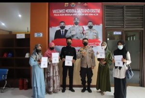 Aceh – jurnalpolisi.id Bidhumas Polda Aceh bekerja sama dengan BPD HIPMI Aceh dan Pihak Civitas Akademi Universitas Bina Bangsa Getsempena (UBBG) Banda Aceh, menggelar vaksinasi merdeka go to universitas, Senin (18/10/21). Kapolda Aceh Irjen Pol. Drs. Ahmad Haydar, S. H., M. M, melalui Kabid Humas Polda Aceh Kombes Pol. Winardy, S H., S. I. K., M. Si, dalam keterangan tertulisnya mengatakan, kegiatan vaksinasi merdeka go to universitas itu berlangsung di UBBG yang beralamat di Jalan Tanggul Krueng Lamnyong No. 34 Rukoh Kecamatan Syiah Kuala, Kota Banda Aceh. Dalam kegiatan vaksinasi itu, ratusan mahasiswa UBBG dari berbagai fakultas berhasil menerima vaksin, ucap Kabid Humas. ” Hasil vaksinasi itu dapat dirincikan bahwa mahasiswa yang mendaftar sebanyak 149 orang, kemudian yang menerima vaksin dosis 1 sebanyak 90 orang dan menerima vaksin dosis 2 sebanyak 56 orang, sedangkan 3 mahasiswa lagi batal divaksin setelah dilakukan pemeriksaan secara medis, ” sebut Kabid Humas. Saat berlangsungnya kegiatan itu turut dihadiri Kasubbid Penmas Bidhumas Polda Aceh AKBP Muliadi, S. H., M. H, mewakili Kabid Humas Polda Aceh, Rektor UBBG Dr. Lili Kasmini, SSi., M.Si, Wakil Rektor 2, sejumlah Civitas Akademika UBBG tersebut dan Pihak BPD HIPMI Aceh, tutur Kabid Humas. Selanjutnya yang hadir Perwira dan Staf Bidhumas Polda Aceh dan sejumlah tenaga kesehatan dari Bid Dokkes Polda Aceh serta sejumlah mahasiswa UBBG yang membantu pada saat dilakukan proses vaksin, terang Kabid Humas. Kegiatan yang mulai digelar sekira pukul 08.00 wib hingga selesai itu diwarnai pembagian voucer gratis berupa paket data Telkomsel sebanyak 6 GB, tutup Kabid Humas. ( bin) Sumber: Bidhumas Polda Aceh.