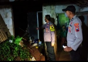 Purbalingga – jurnalpolisi.id Hujan deras yang mengguyur wilayah Kabupaten Purbalingga menyebabkan tanah longsor di Desa Tumanggal, Kecamatan Pengadegan, Kabupaten Purbalingga, Sabtu (13/11/2021) sore. Longsoran tanah menimpa sebuah rumah milik warga desa setempat. Kapolsek Pengadegan AKP Susilo mengatakan peristiwa tanah longsor di Desa Tumanggal terjadi sekira jam 15.00 WIB. Tanah longsor menimpa rumah milik Sunandar (51) di Desa Tumanggal RT 10 RW 3, Kecamatan Pengadegan, Kabupaten Purbalingga. “Tidak ada korban jiwa akibat kejadian tersebut. Namun bagian dapur dan kamar mandi rumah korban mengalami kerusakan cukup parah. Kerugian ditaksir mencapai Rp. 30 juta,” jelas kapolsek. Berdasarkan keterangan pemilik rumah sebelum kejadian hujan deras mengguyur wilayah Desa Tumanggal. Tiba-tiba terdengar suara gemuruh di belakang rumahnya. Saat dilakukan pengecekan didapati bagian belakang rumah sudah rusak tertimpa longsoran tanah. Dijelaskan bahwa penyebab longsor akibat hujan deras yang mengguyur wilayah tersebut. Air menggerus tanah tebing setinggi enam meter mengakibatkan longsor dan menimpa rumah di bawahnya. “Selain menimpa satu rumah warga, kejadian tersebut menyebabkan dua rumah lainnya terancam apabila terjadi longsor susulan,” kata kapolsek. Kapolsek mengimbau kepada masyarakat di sekitar lokasi kejadian untuk waspada potensi longsor susulan. Hendaknya warga mengungsi sementara di tempat yang aman apabila hujan deras terus mengguyur wilayah tersebut. (Sambudi JPN)
