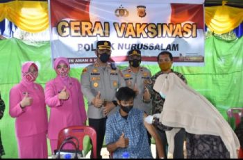 Dampingi Kapolres, Ini Yang Disampaikan Ketua Bhayangkari Cabang Aceh Timur Kepada Peserta Vaksin