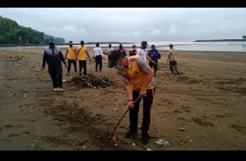 HUT Polairud ke 71, Polres Kebumen Bersih-Bersih Pantai