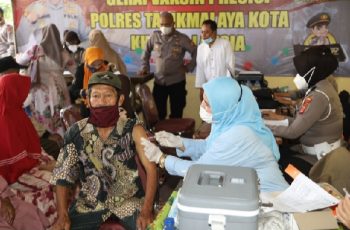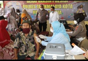 Kapolsek Kawalu Berikan Hadiah Kepada Warga Lanjut Usia Yang Ikuti Vaksin