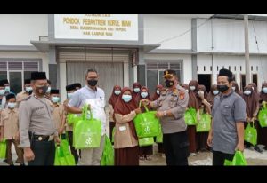 Kapolsek Tapung Antarkan Paket Bantuan Untuk Para Santri Ponpes Nurul Iman Desa Sumber Makmur