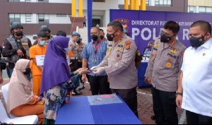 PEKANBARU – jurnalpolisi.id Zelri Eka Putra (48), korban jambret sangat bersyukur dan mengucapkan trimakasih kepada aparat kepolisian Polda Riau. Ucapan trimakasih itu diungkapkan Zelri, usai pengungkapan kasus jambret yang dilakukan oleh Subdit III Ditreskrimum Polda Riau. Sebab hanphone satu-satunya miliknya terselamatkan berkat pengungkapan kasus jambret tersebut. Zelri mengaku, bahwa handphone yang dijambret itu adalah satu-satunya hanphone yang dimilikinya. Ditambah, hanphone tersebut sangat dibutuhkan untuk keperluan anaknya sekolah secara daring. “Waktu itu pas hari Jumat, saya bersama anak saya sedang mengendarai becak di jalan Soekarno Hatta Marpoyan. Tiba tiba datang pelaku merampas HP dari tangan saya dan kabur,” tutur Zelri. “Saya sangat berterimakasi kepada bapak-bapak polisi. HP saya bisa kembali. Saya sangat membutuhkan HP ini untuk anak saya sekolah daring,” sambung Zelri kepada Wakapolda Riau, Brigjen Tabana Bangun, Kabid Humas Polda Riau, Kombes Pol Sunarto, dan Dirreskrimum Polda Riau, Kombes Teddy Ristiawan, di Mapolda Riau, Rabu (10/11/2021). Zelri mengaku sempat bingung saat hanphone miliknya dijambret, sebab tidak ada lagi hanphone yang akan digunakan untuk anaknya sekolah. “Waktu dijambret itu ya saya bingung. Tapi ini saya sangat senang, hanphone saya bisa kembali, berkat bantuan bapak-bapak polisi,” ucap Zelri. Begitupun yang dialami seorang ibu bernama Nurlaili (33), juga mengucapkan trimakasih kepada aparat kepolisian yang sudah menangkap para pelaku jambret. Sehingga handphone miliknya juga kembali ke genggaman tangannya. Nurlaili mengaku sangat kesal saat dijambret, sebab hanphone miliknya dirampas pada saat ia sedang melakukan video call dengan anaknya. “Kejadiannya hari Sabtu tanggal 6 Nopember, kira kira jam 13.30 Wib saat saya berhenti disimpang 5 Labersa, saya sedang menelpon anak saya, kaca mobil terbuka, tiba tiba datang pelaku merampas HP saya dan langsung kabur menggunakan sepeda motor,” urai Nurlaili. “Terimakasih yang sebesar-besarnya kepada bapak polisi, sudah menangkap pencuri HP ini. Alhamdulillah pelaku sudah ditangkap dan HP saya dikembalikan oleh pak Polisi, hukum seberat beratnya pak,” ucapnya sumringah. Terpisah Wakapolda Riau, Brigjen Tabana Bangun, mengatakan, handphone para korban sengaja dikembalikan (dipinjampakaikan) langsung karena dikhawatirkan handphone tersebut sangat dibutuhkan oleh para korban. “Ini kita kembalikan dulu, nanti kalau dibutuhkan untuk pembuktian baru dipinjam lagi untuk kepentingan di kejaksaan ataupun di pengadilan nanti,” kata Tabana Bangun kepada para korban. Selain Zelri dan Nurlaili, beberapa korban lain ikut datang ke Polda Riau untuk mengungkapkan terimakasih karena pelaku kejahatan jambret sudah ditangkap. Dan barang berharga mereka yang diambil dapat kembali dengan aman. Bachtiar (65 tahun), Ketua RT dikelurahan Tangkerang Tengah menyampaikan syukur dan terimakasihnya kepada Polda Riau dengan ditangkapnya pelaku jambret yang meresahkan warganya. “Terimakasih pak Kapolda Riau, kami dan warga senang, pelaku jambret sudah ditangkap. Membuat kami merasa sangat terbantu oleh Polisi,” ujar Bachtiar Diketahui, Subdit III Ditreskrimum Polda Riau sudah menangkap 9 orang pelaku jambret yang sudah beraksi sebanyak 97 kali di Kota Pekanbaru. (Sulmandri Sp)