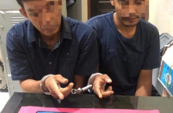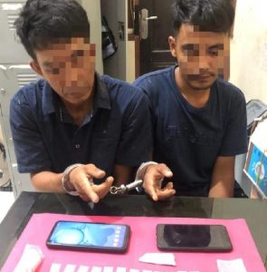 KAMPAR – jurnalpolisi.id Usai menangkap seorang kurir shabu di Desa Sawah Kecamatan Kampar Utara pada Selasa siang (09/11/2021), Tim Opsnal Satresnarkoba Polres langsung melakukan pengembangan, dan berhasil menangkap 2 orang tersangka dengan barang bukti 37 paket narkotika jenis shabu siap edar. Kedua orang pengedar shabu yang diamankan Aparat Kepolisian ini adalah TA alias UN (29) warga Desa Sawah Kec. Kampar Utara, dan MA alias AM (43) warga Desa Pantai Cermin Kec. Tapung. Kedua tersangka ini ditangkap pada Selasa (09/11/2021) sekira pukul 14.00 wib, hanya berselang setengah jam setelah penangkapan terhadap AF selaku kurir narkoba. Mereka ditangkap di areal kebun sawit di Dusun Tanjung Desa Sawah Kecamatan Kampar Utara. Dari mereka ditemukan barang bukti 37 paket narkotika jenis shabu terbungkus plastik bening seberat 8.69 gram, 1 pak plastik bening dan selembar kertas timah rokok serta 2 unit Hp yang digunakan pelaku. Pengungkapan kasus ini berawal pada Selasa (09/11/2021) sekira pukul 14.00 Wib, saat itu Tim Opsnal Satresnarkoba Polres Kampar melakukan pengembangan dari tertangkapnya AF sebagai kurir shabu. Diketahui bahwa narkotika yang ada pada AF berasal dari TA alias UN yang juga warga Desa Sawah Kecamatan Kampar Utara. Tim langsung melakukan penyelidikan dan pencarian terhadap TA alias UN, didapat informasi lanjutan bahwa yang bersangkutan tengah berada diareal kebun sawit milik warga di Dusun Tanjung Desa Sawah. Tim segera mendatangi lokasi dan berhasil mengamankan dua orang terduga pelaku, yaitu TA alias UN warga Desa Sawah Kec. Kampar Utara dan MA alias AM warga Desa Pantai Cermin Kec. Tapung. Kemudian didampingi aparat desa setempat dilakukan penggeledahan, dan ditemukan 34 paket narkotika jenis shabu pada tersangka TA alias UN, dan 3 paket lainnya pada tersangka MA alias AM. Selanjutnya kedua tersangka dan barang bukti dibawa ke Polres Kampar untuk menjalani pemeriksaan lebih lanjut. Kasatres Narkoba AKP Daren Maysar SH saat dikonfirmasi membenarkan penangkapan pelaku narkoba ini, disampaikan bahwa dari hasil pengecekan urine tersangka hasilnya positif Methamphetamine. Kini kedua tersangka dan barang bukti telah diamankan di Mapolres Kampar untuk menjalani proses hukum lebih lanjut, pelaku akan dijerat dengan pasal 114 ayat (2) junto pasal 112 ayat (2) Undang-undang RI Nomor 35 tahun 2009 tentang narkotika, dengan ancaman hukuman penjara paling singkat selama 6 tahun, jelasnya. (Anto D)