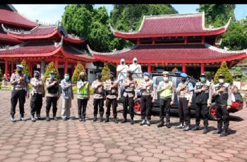 SEMARANG- jurnalpolisi.id Satgas Operasi Zebra candi 2021 laksnakan penyemprotan disinfektan di Klenteng Sam Poo Kong Semarang, Kamis (18/11/2021). Selain penyemprotan, satgas juga membagikan masker dan penyuluh kepada masyarakat sekitar. Kegiatan diawali apel pasukan yang dipimpin Kabag Bin Ops Ditlantas Polda Jateng, AKBP Yunaldi. Mewakili Dirlantas Polda Jateng, AKBP Yunaldi mengatakan operasi Zebra Candi 2021 berorientasi pada upaya preemtif, dan preventif. Hal ini dilakukan agar masyarakat sadar dan tertib berlalu lintas. “Masyarakat diharapkan meningkatkan toleransi dan etika berlalu lintas saat menggunakan kendaraan,” tutur dia. Terkait pembagian masker, AKBP mengatakan agar masyarakat sadar akan bahaya covid 19 dan taat protokol kesehatan. Adapun kegiatan penyuluhan, dan pembagian masker dipimpin AKP Sofia Wuriana dari Subbag Remin Ditlantas. “Personel yang terlibat pada operasi Zebra Candi 2021 di tingkat Polda Jateng 202 yang terbagi dalam 4 satgas,” ujar dia. Ia menuturkan operasi zebra Candi 2021 dilaksanakan dari (15/11) hingga (28/11). Rangkaian kegiatan operasi zebra candi Baksos, penyeluhan, pembagian masker serta upaya lain untuk meningkatkan kesadaran berlalu lintas dan penegakkan prokes.( Pewarta : Arif JPN)